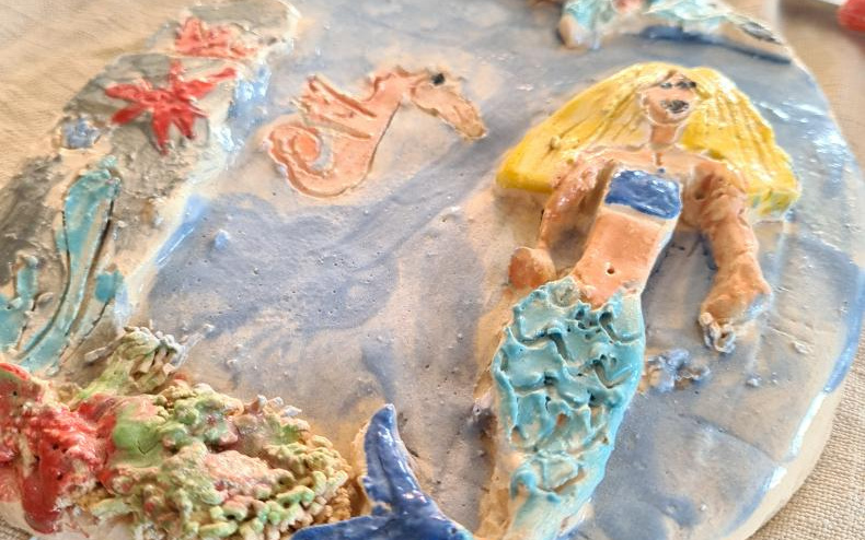 Nach einer kurzen Einführung über Ton, Werkzeug und Arbeitstechniken wird ein Relief aus Ton gestaltet. Ein Relief ist eine an den Hintergrund gebundene plastische Darstellung. Ob Landschaften, Fantasiewesen oder abstrakte Formen – unter der fachkundigen Anleitung der Keramikerin Cathrin Neumann-Taubert werden mit den Händen eigene dreidimensionale Bilder aus Ton geformt.